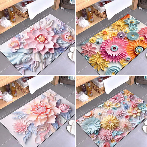 - 1 * 3D-blomtryck Superabsorberande halkfri golvmatta