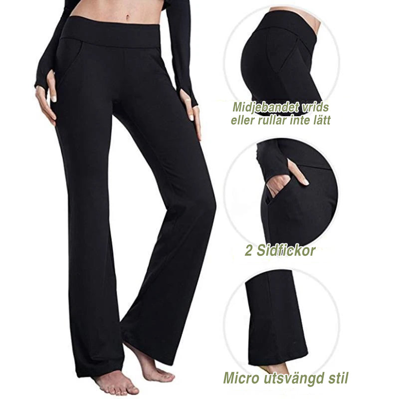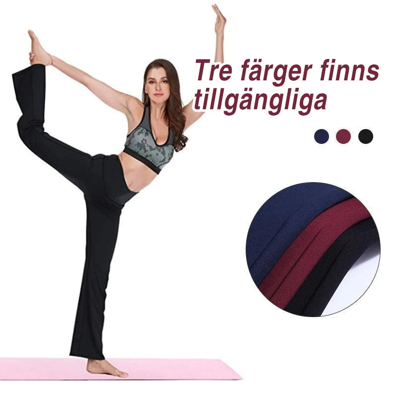 NĂRA SLITTNING: Yogabyxorna kommer med smala lĂ„rdesign och bred benöppning, tĂ€cker de flestas kurvor, med höga klackar eller sneakers, fĂ„r dina ben att se smala och raka ut