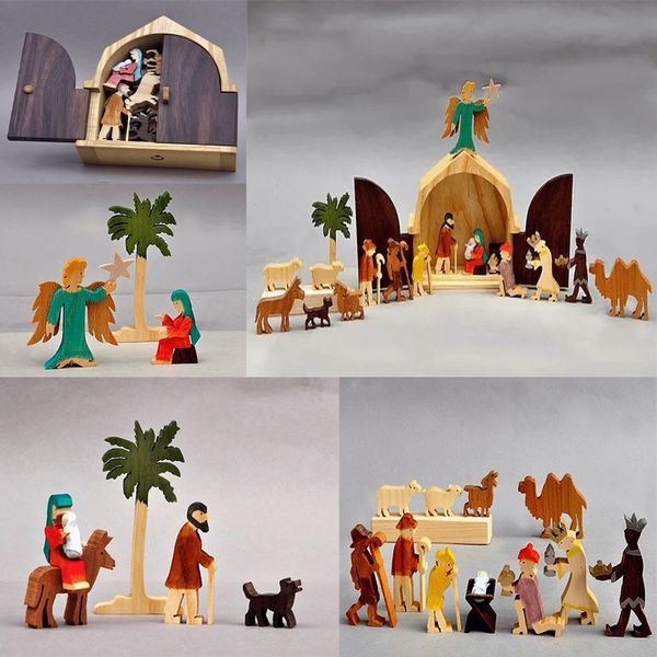 JulberĂ€ttelsen Nativity Set, Den totala utfĂ€llda storleken kan nĂ„80 * 40 * 20cm ïŒ stabil 16 * 16 * 8cm (VĂ„r julberĂ€ttelse i trĂ€ innehĂ„ller 18 figurer.)