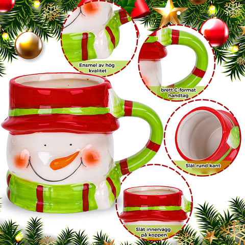 âïžEach muggen Ă€r dekorerad med vackra mönster, inklusive söta julelement som Ă€lg, jultomte, snögubbe och pingvin. Dessa mönster Ă€r detaljerade och fĂ€rgglada och ger dig en glad och festlig semesteratmosfĂ€r.