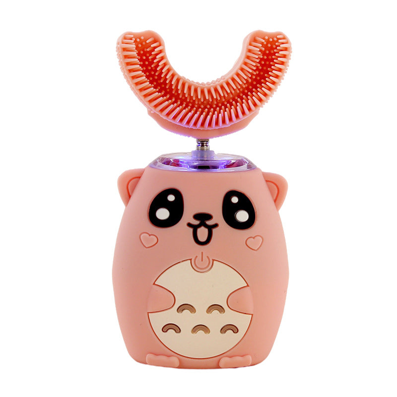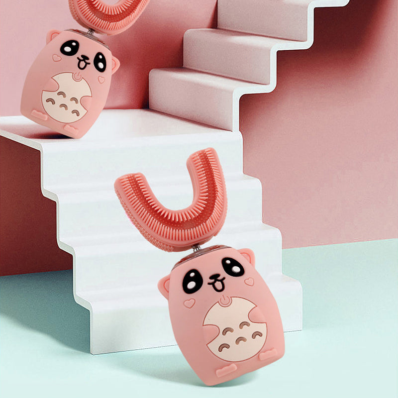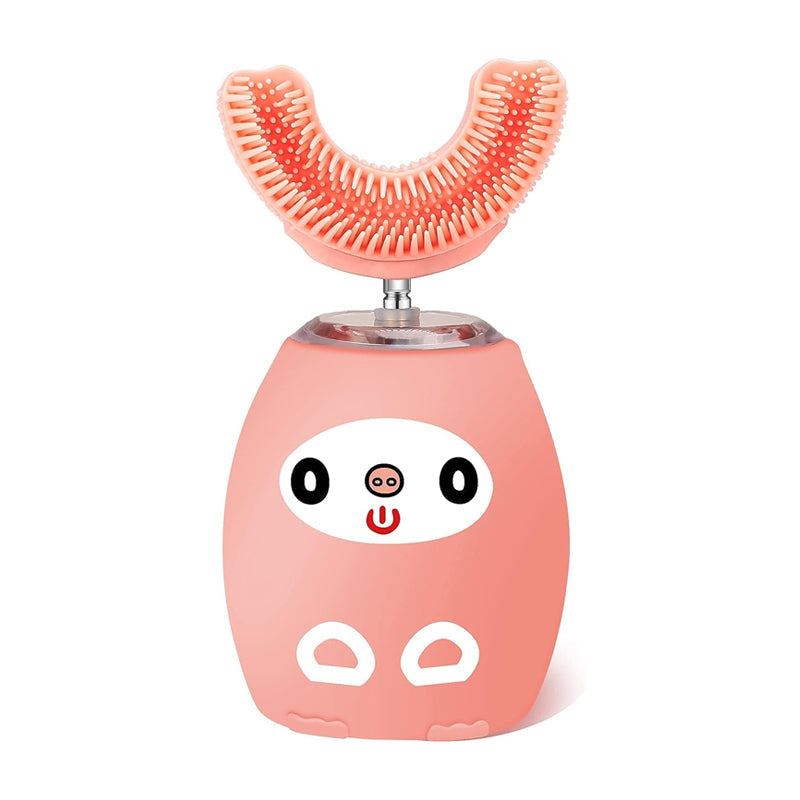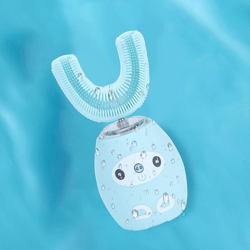 🦷 Skonsam vård med U-formad design: Denna U-formade tandborste för barn har ett mjukt silikonborsthuvud, speciellt utvecklat för ömma och känsliga tänder. Den unika U-formade designen säkerställer en 360 ° rengöringsupplevelse från alla vinklar, vilket främjar en hälsosammare munhåla.