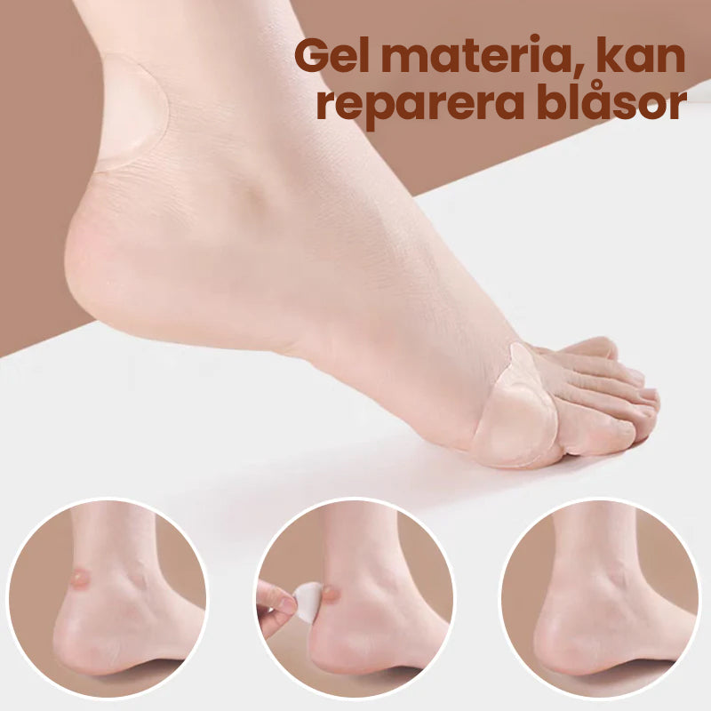Bekväm och bekväm: Dessa plåster är designade för enkel applicering direkt på huden. Med sin elastiska och flexibla karaktär formar de sig efter dina fötters konturer, vilket säkerställer en bekväm och diskret passform. Deras slimmade och osynliga design möjliggör sömlös slitage utan något obehag, vilket ger en andningsbar och lätt lösning.