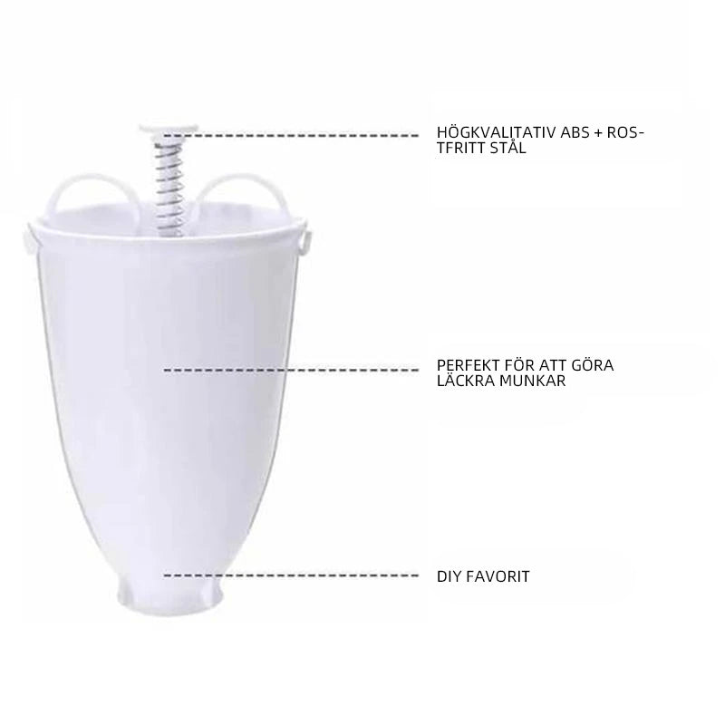 Denna lÀttanvÀnda Donut Maker- Gör dina egna munkar hemma Àr varje munk Àlskares dröm! Den gör att du kan fördela deg i jÀmna storlekar sÄ det Àr sÄ enkelt att göra egna munkar; du fÄr smaka en nybakad saftig munk pÄ nolltid!