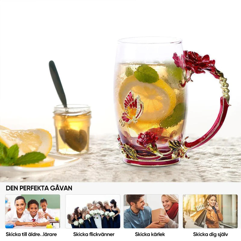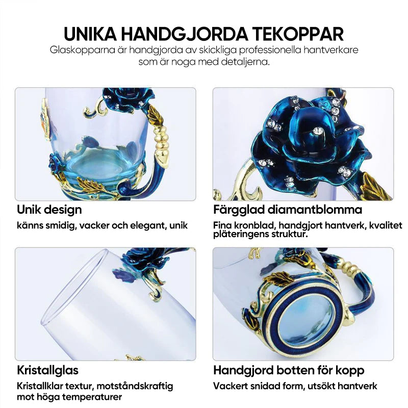 Tekoppsset i emaljerat roséglas (med sked)