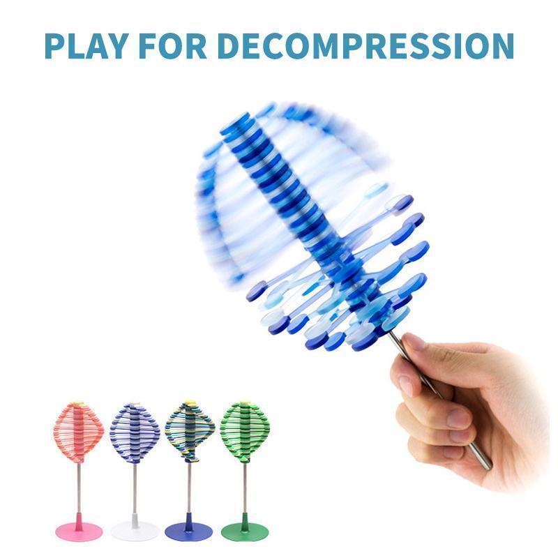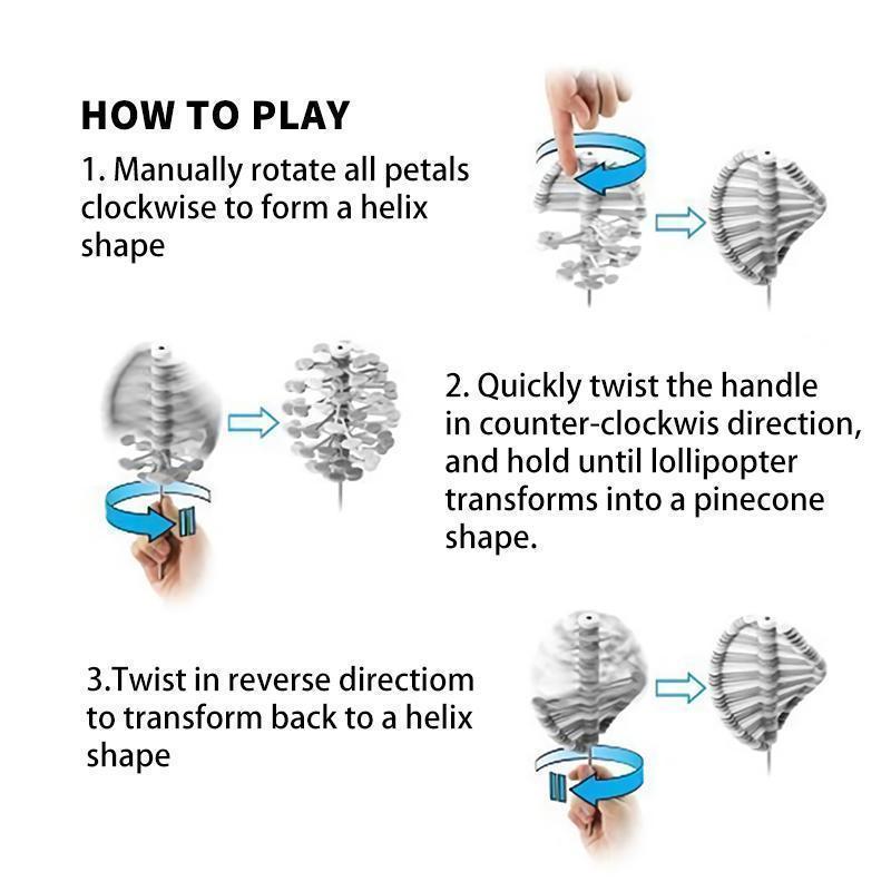 Anti-Stress Leksak- Snurrande Klubba. Rolig och samtidigt avkopplande lek som Àven utvecklar motoriken i hÀnderna. Med en snabb handrörelse förvandlas klubban magiskt frÄn en helixform till en pinecone-form och tillbaka igen i en förvÄnansvÀrt elegant rörelse. För att förvandla det, vrid bara pÄ handtaget och se magin. Om du vill att den ska ÄtervÀnda, vrid den bara Ät andra hÄllet. Rolig och avkopplande lekstund!
