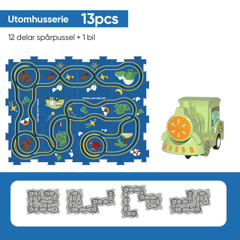 Roliga pussel: Detta pusselspel för barn innehåller 12 pusselbitar, 1 bil och kräver 1 AAA-batteri (ingår ej), vilket kan uppmuntra barn att vara innovativa och skapa unika tomter.