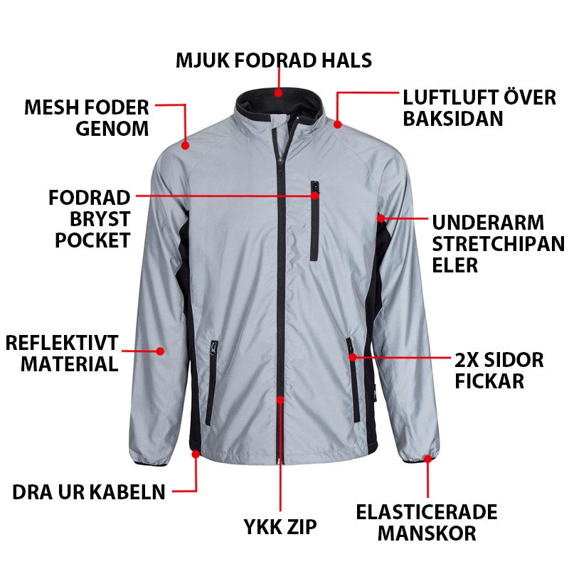 Reflekterande material - silvermaterial reflekterar strålkastarna rakt tillbaka till föraren. Var mycket synlig i svagt ljus för att skydda dig