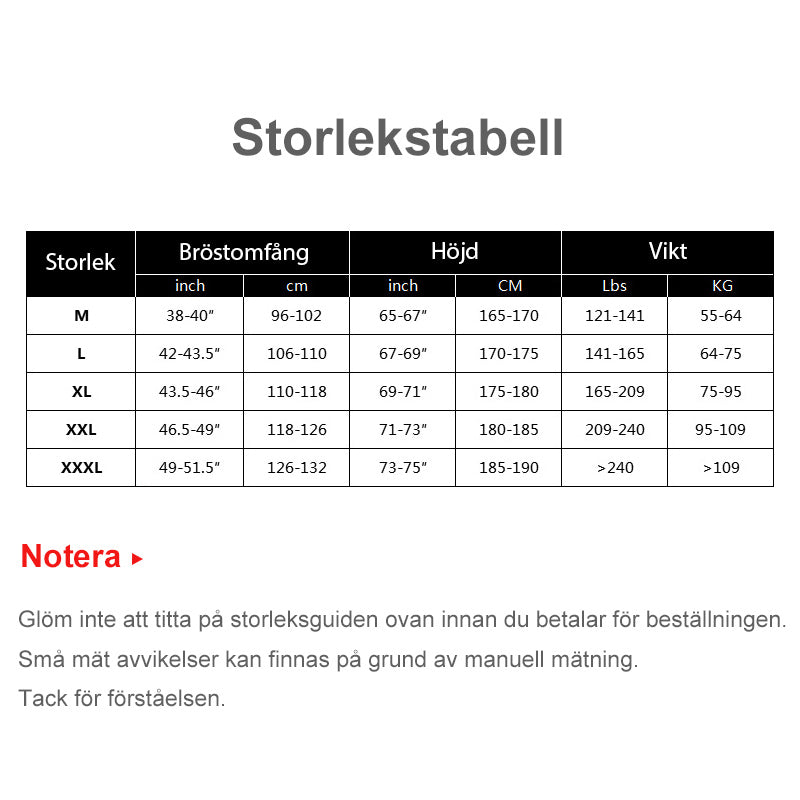 Följ storlekstabellen nedan, mät dig själv och jämför med diagrammet.