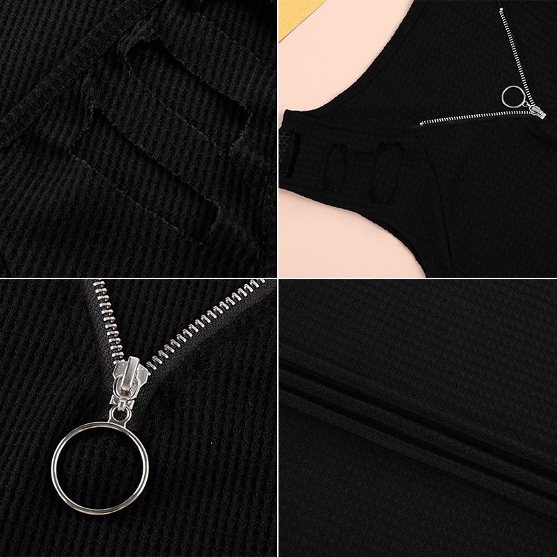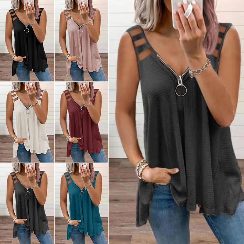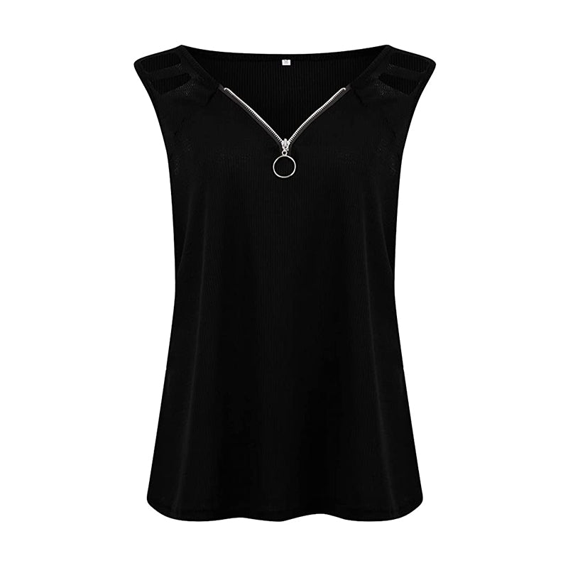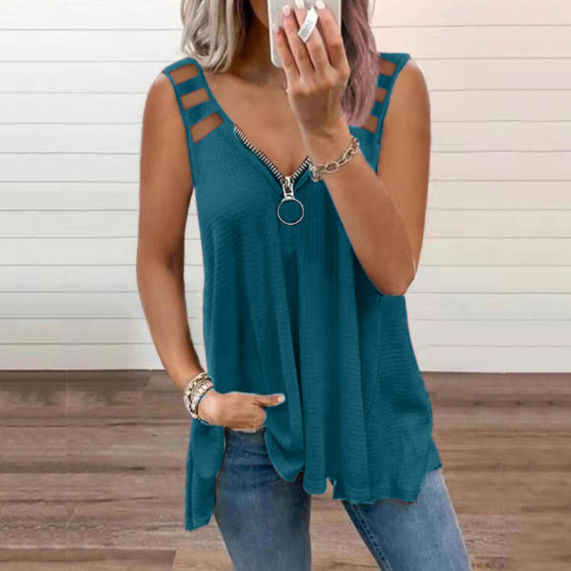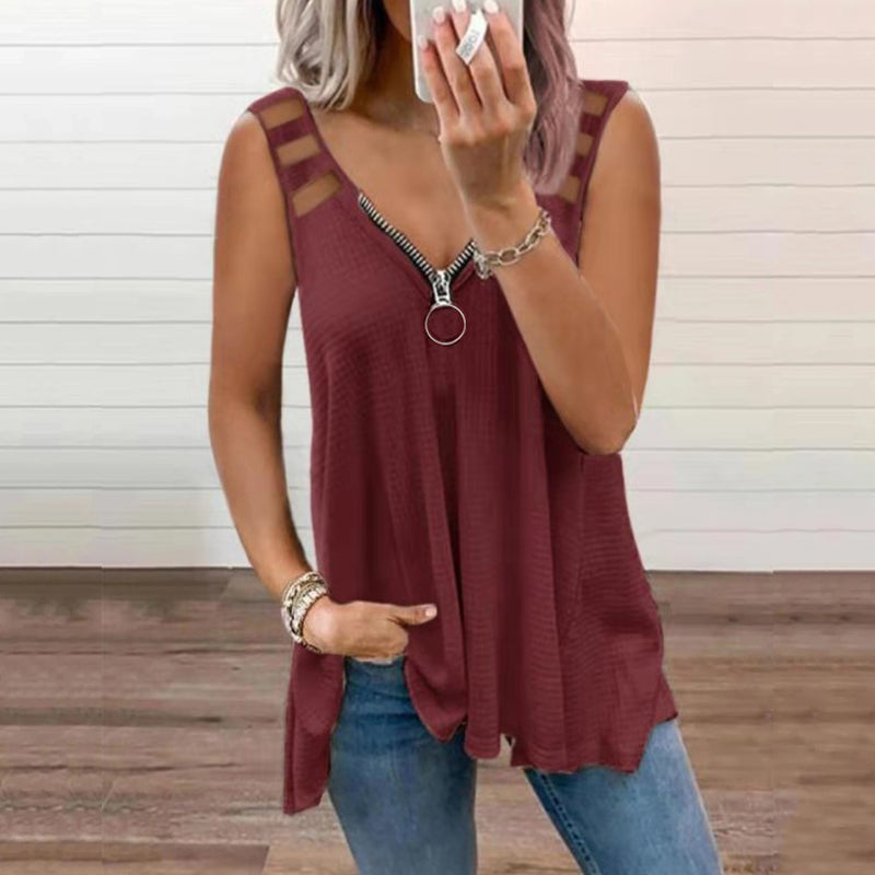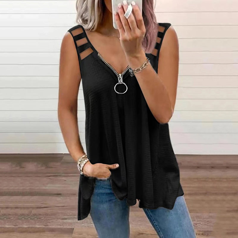 •  1 x Ärmlös V-halsad solid linne med dragkedja