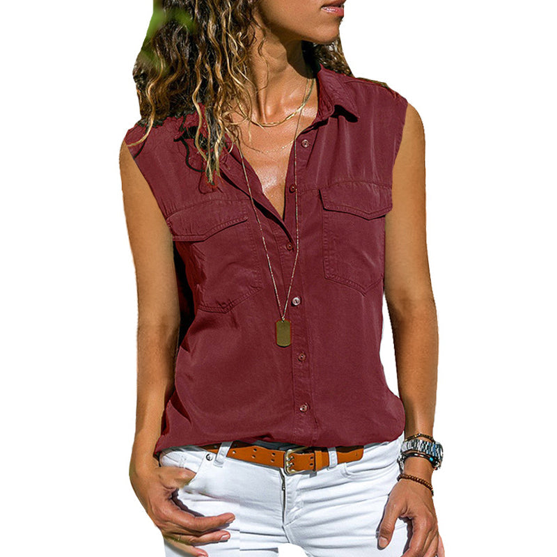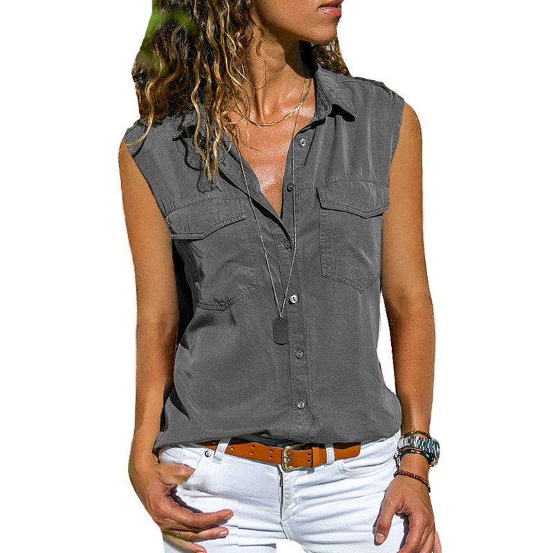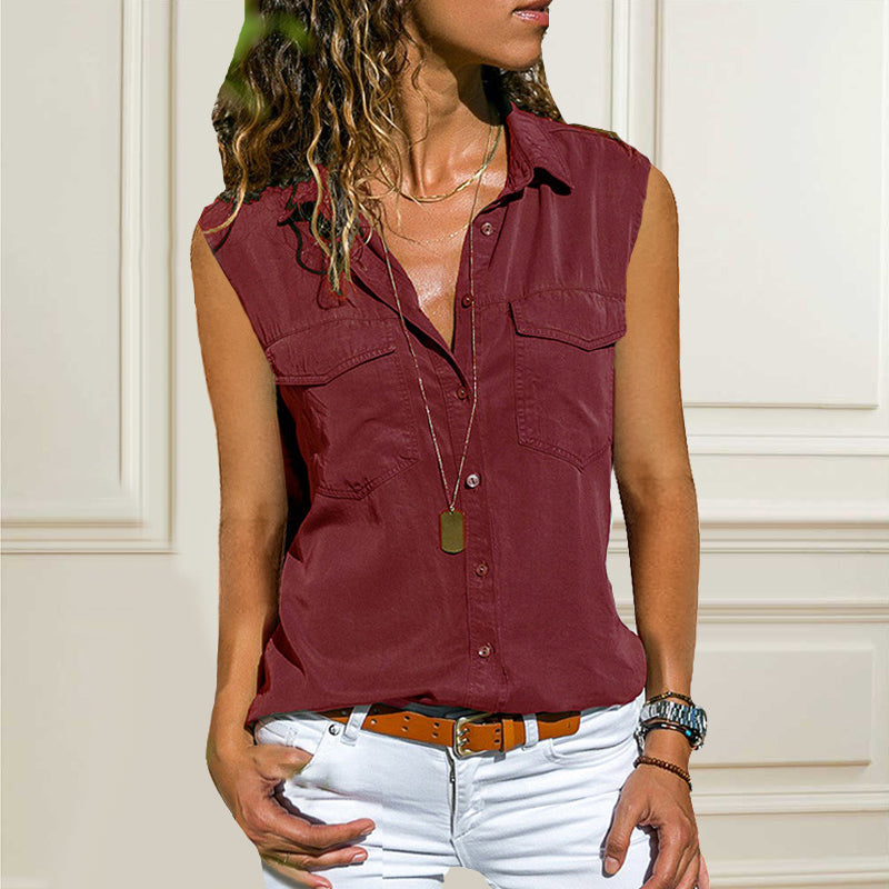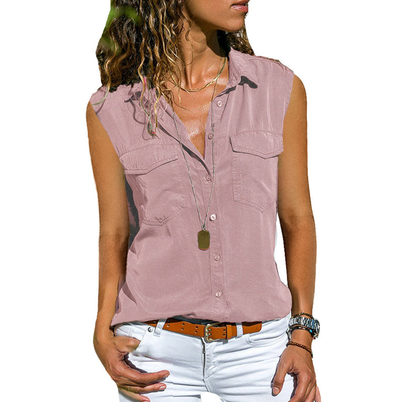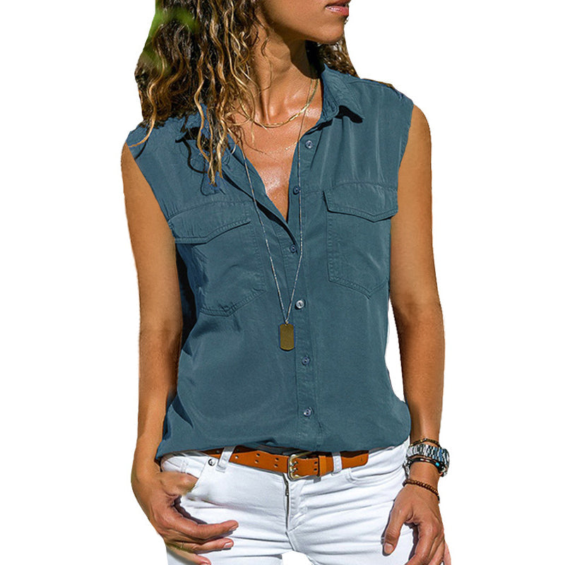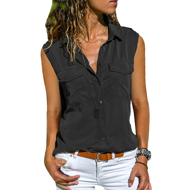 Paketet innehåller: 1 * Enfärgad ärmlös blus med fickor