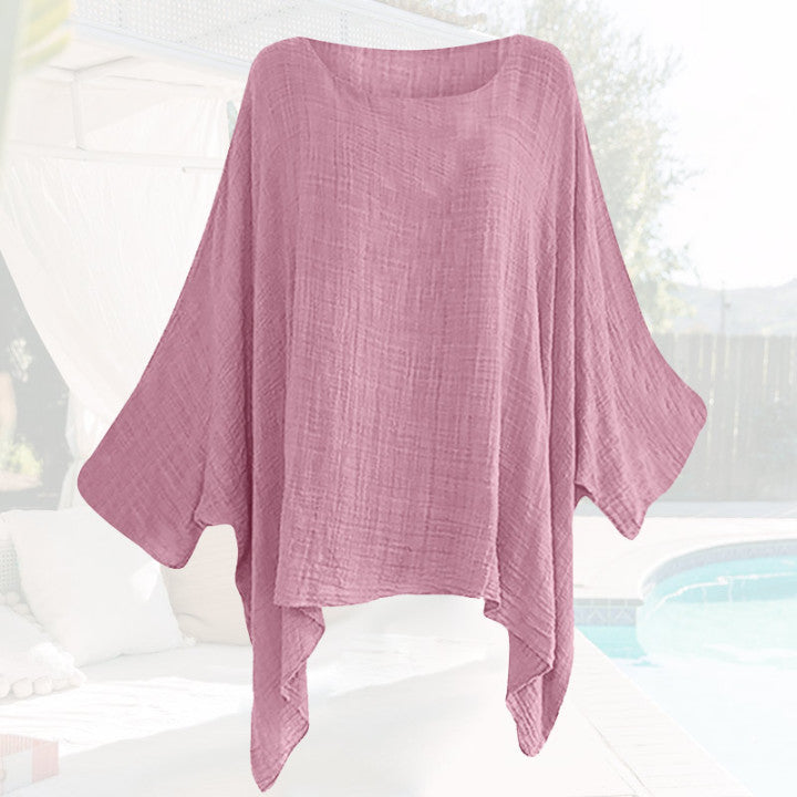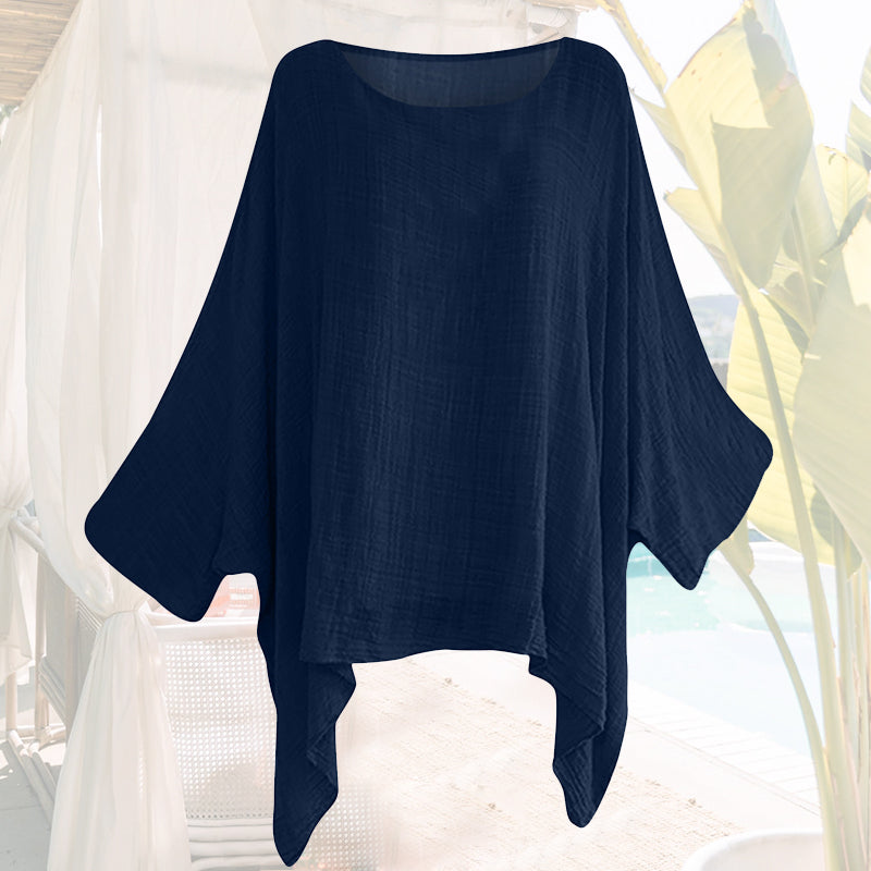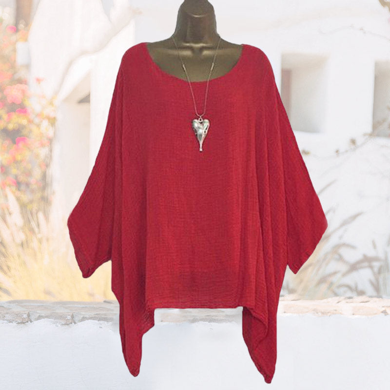 - Fräscha upp din garderob med denna enfärgade lösa blus i fladdermusärmar.