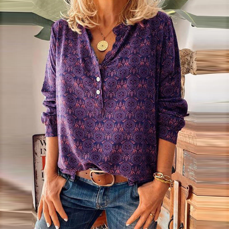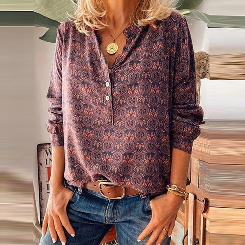 • Ladda upp bild till gallerivisning, Retro tryckt långärmad skjorta