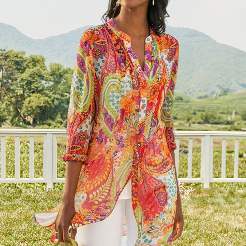 • Ladda upp bild till gallerivisning, Tryckt lapel långärmad skjorta