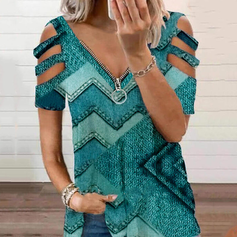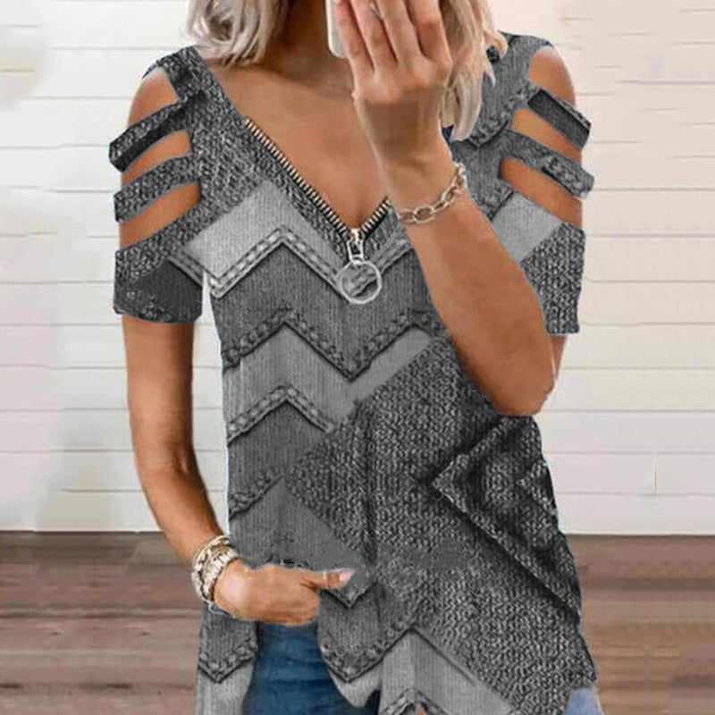 • Ladda upp bild till gallerivisning, V-halsad dragkedja kortärmad t-shirt