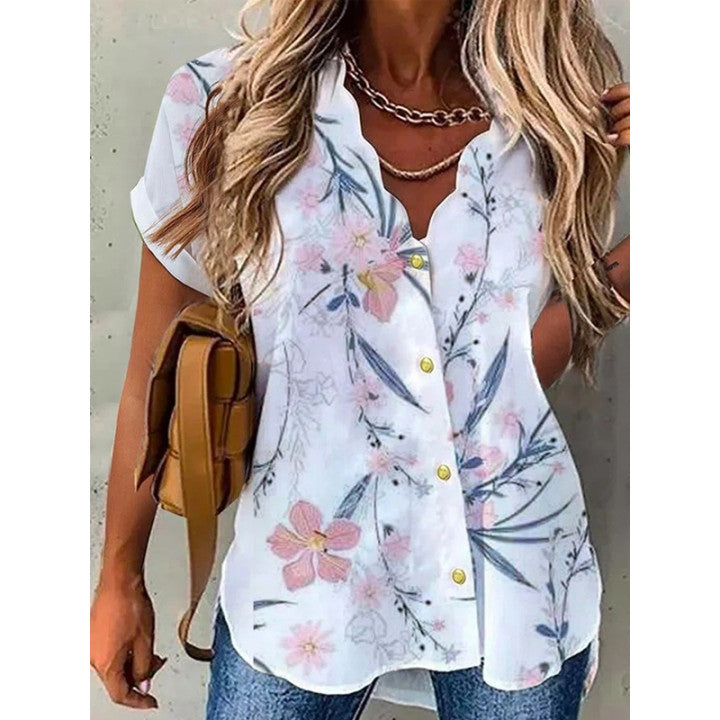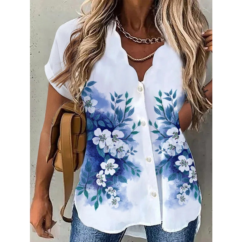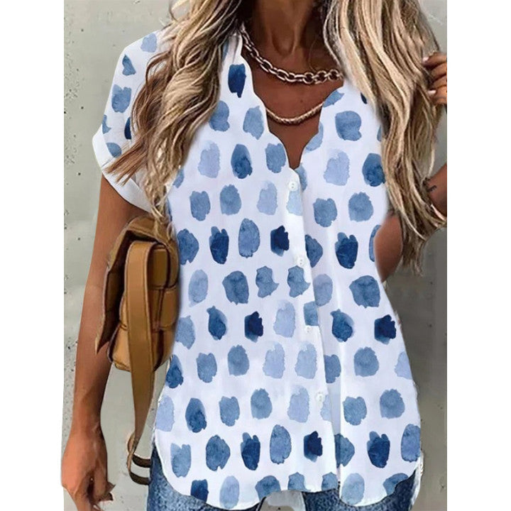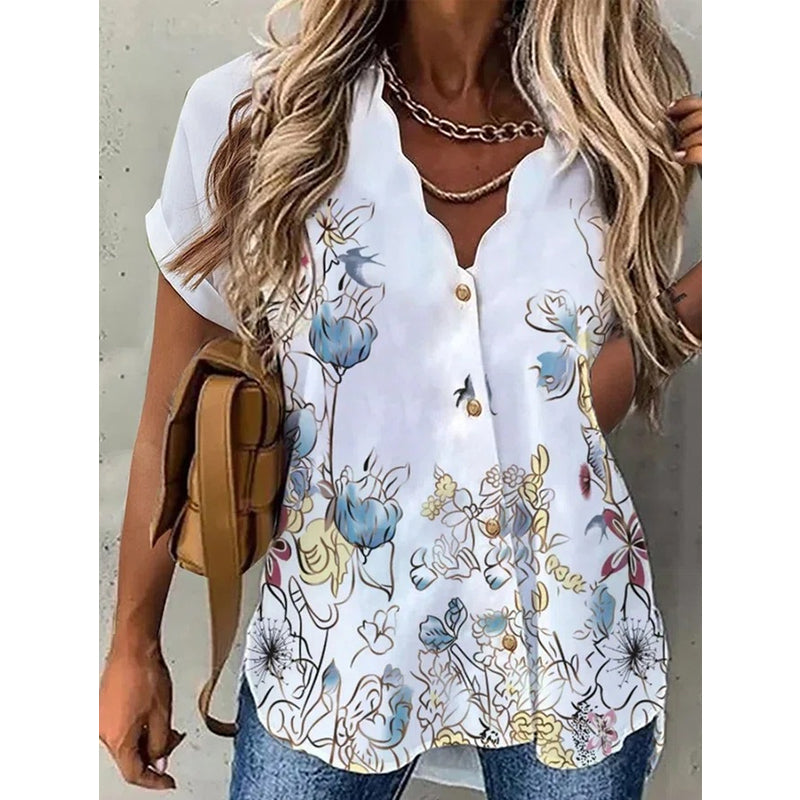 - Den vågiga V-ringningen på denna blus för kvinnor är höjdpunkten i urringningen och får dig att se stilig ut.