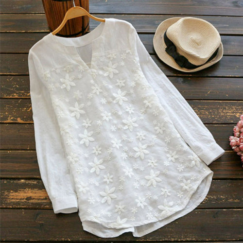 Långärmad topp i spetsbroderad bomull för kvinnor