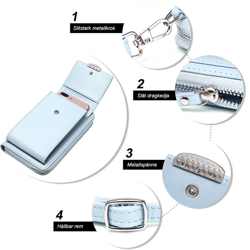 - Väsktyp: Crossbody -väska, telefonväska, plånbok