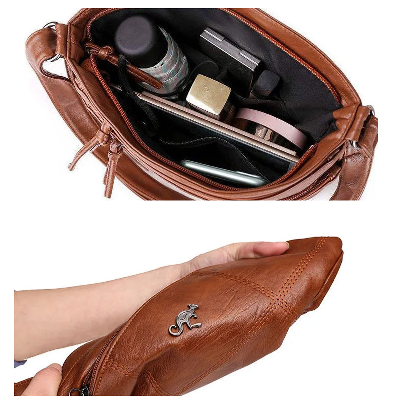 - Flera fickor är bekväma för att förvara mobiltelefoner, plånböcker, kosmetika, glasögon och andra personliga föremål.