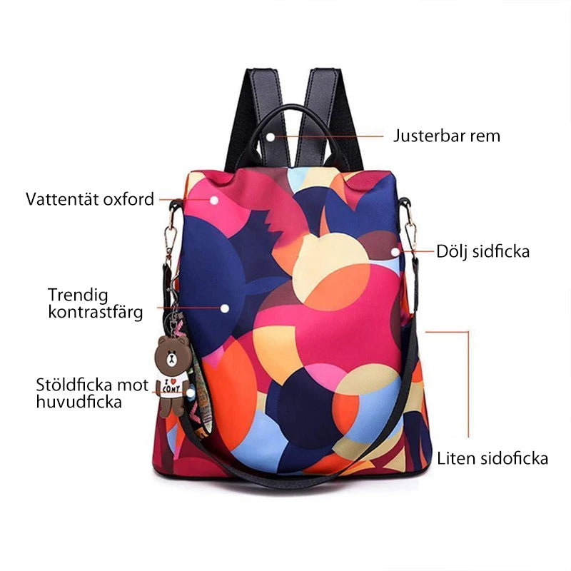 1 x Ryggsäck för oxford-tyg med tryck för kvinnor