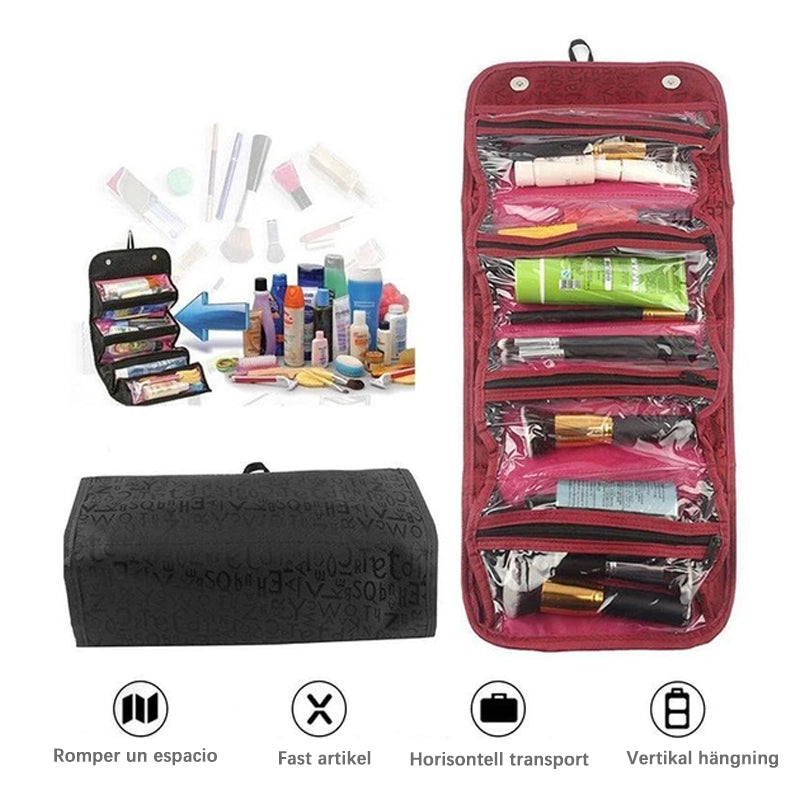 - Har du ofta brist på utrymme i ditt bagage? Det hjälper dig att undvika detta, du behöver inte välja vad du ska ta, med vår sminkväska kan du hänga vad du vill.
