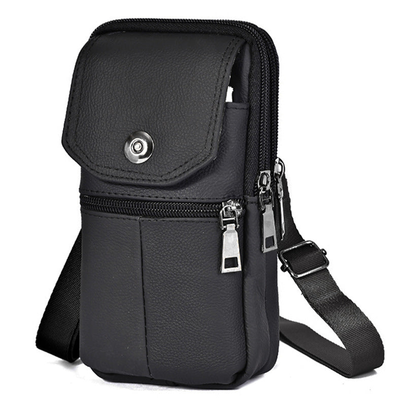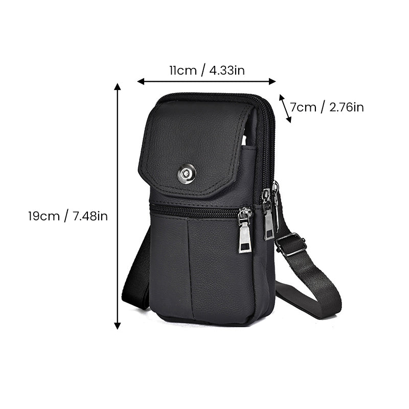[Design med dubbla fickor] Detta mobilfodral i läder har en öppen framficka och en huvudficka med dragkedja, som har en smidig och enkel dragkedja med läderdrag.