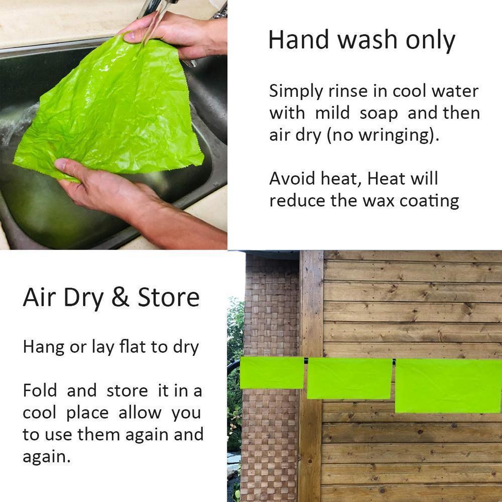 - EASY TO USE- The beeswax food wraps are super easy to use and easy to clean. The warmth of your hands will help loosen the wax and you are ready to wrap any food that you would use plastic wrap for! To clean, simply hand wash with cool water and soap and hang to dry. Keep your food fresh and the planet free of plastic!