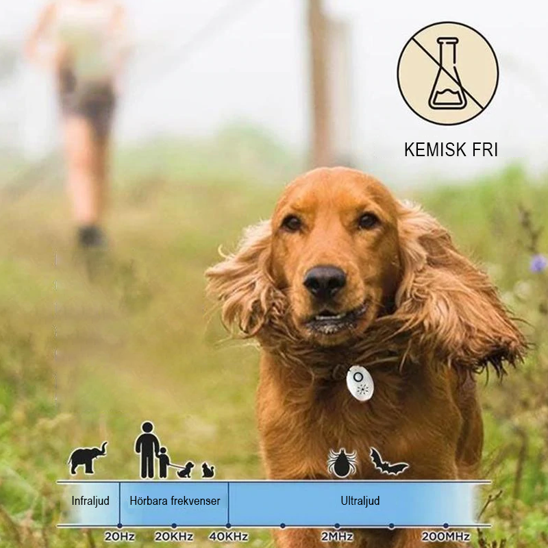 LÖS FÄSTINGSPROBLEM: Lös effektivt fästingsproblem på husdjur. Ultraljudspulsemission är 94 % effektiv mot fästingar inom en radie på 2,5 meter